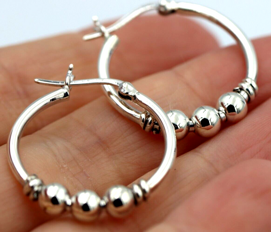 Kaedesigns, Genuine Sterling Silver 925 25mm Hoop 3 Balls Hoop Earrings