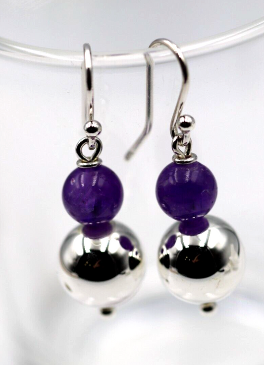 Genuine 12mm Sterling Silver 925 10mm Amethyst Ball Earrings