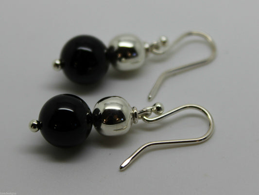 Sterling Silver 8mm Silver Ball & 10mm Onyx Wide Ball Earrings