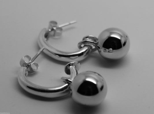 Genuine Extra Large Sterling Silver 925 14mm Ball Drop Earrings