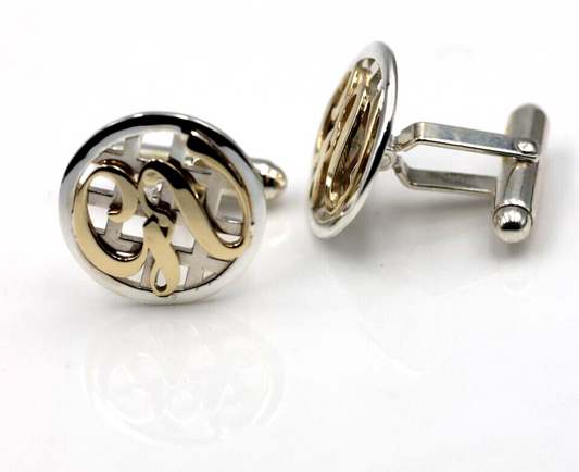 Genuine Sterling Silver + 9ct Yellow Gold Heavy Cuff Links with your initials