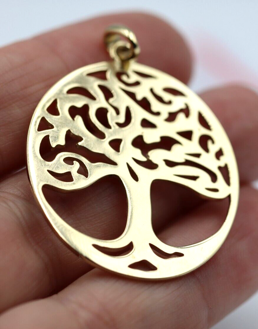 Genuine 9ct 9k Yellow Gold Oval Filigree Tree Of Life Pendant