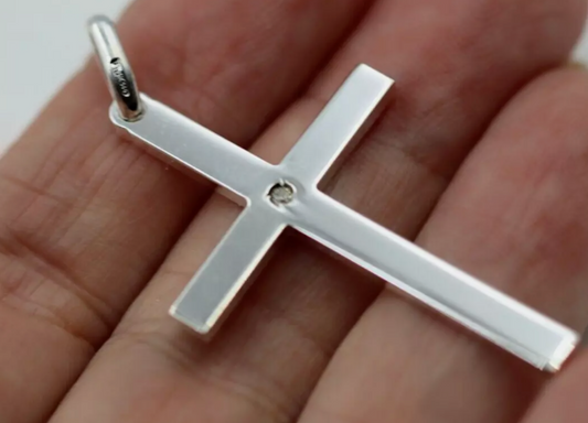 Genuine Sterling Silver 925 Solid CZ Large Cross Pendant / Charm