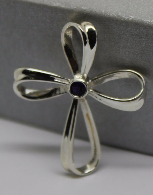 Kaedesigns, New Genuine Sterling Silver Cross Pink Sapphire Set Cross Pendant
