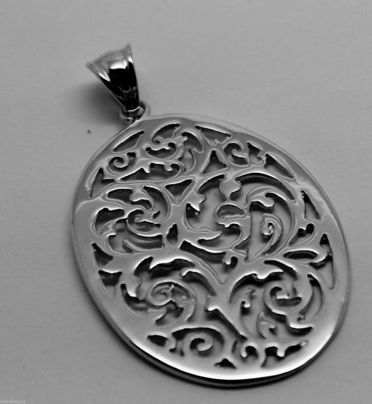 Kaedesigns Genuine Heavy Solid Sterling Silver 925 Large Oval Filigree Pendant