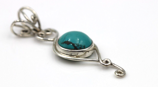 Genuine Sterling Silver Blue Turquoise Set Fancy Pendant