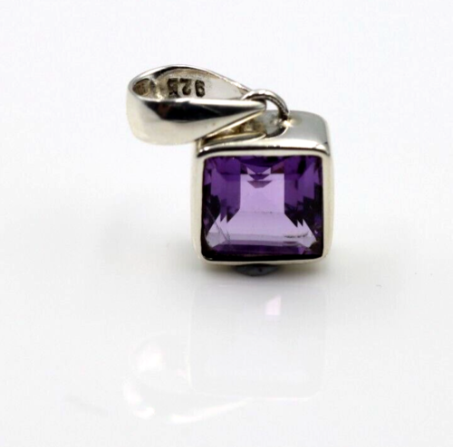 Sterling Silver Square Bezel Set Natural Amethyst Pendant /Charm