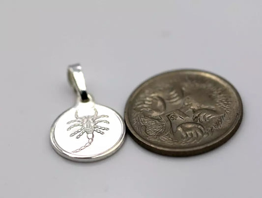 Genuine 12mm Fine Silver 999 Scorpio Round Zodiac Pendant / Charm