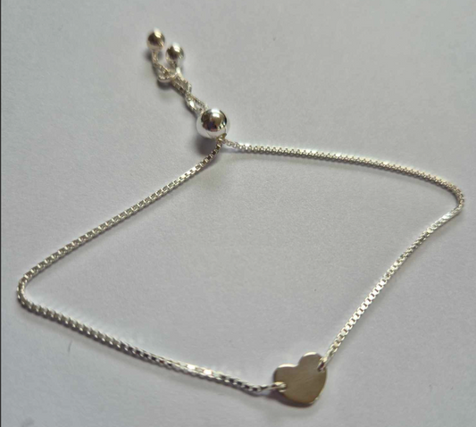 Sterling Silver 925 Bracelet with Heart Plaque, Adjustable Box Link