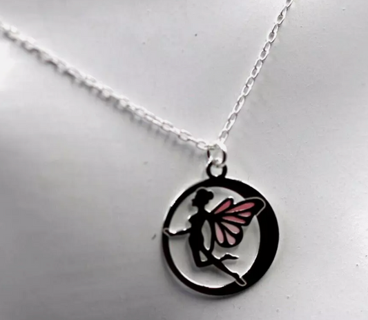 Sterling Silver 925 Fairy Pendant with Pink Enamel Wings Necklace