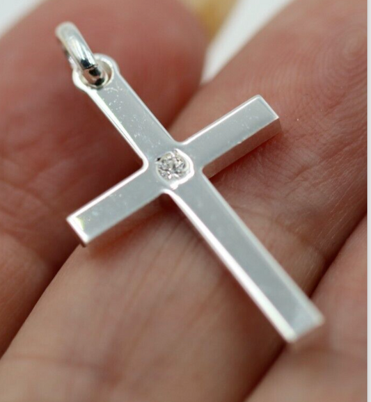 Genuine Sterling Silver 925 Solid CZ Cross Pendant / Charm