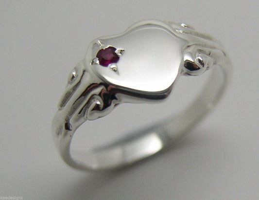 Genuine Sterling Silver 925 Heart Signet Ring Choose Your Size And Gemstone