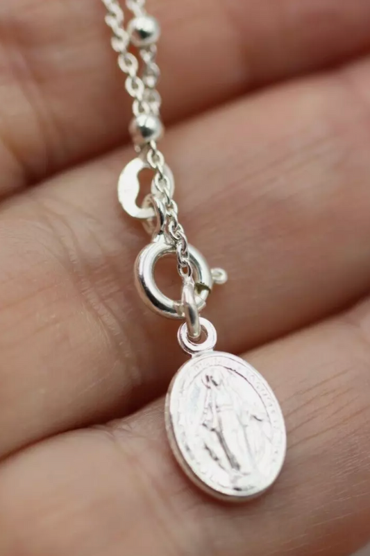 Sterling Silver 925 Beaded Cable Chain Bracelet + Miraculous Medal