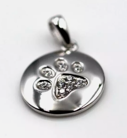 Sterling Silver 925 CZ-Set Round Dog Paw Print Pendant