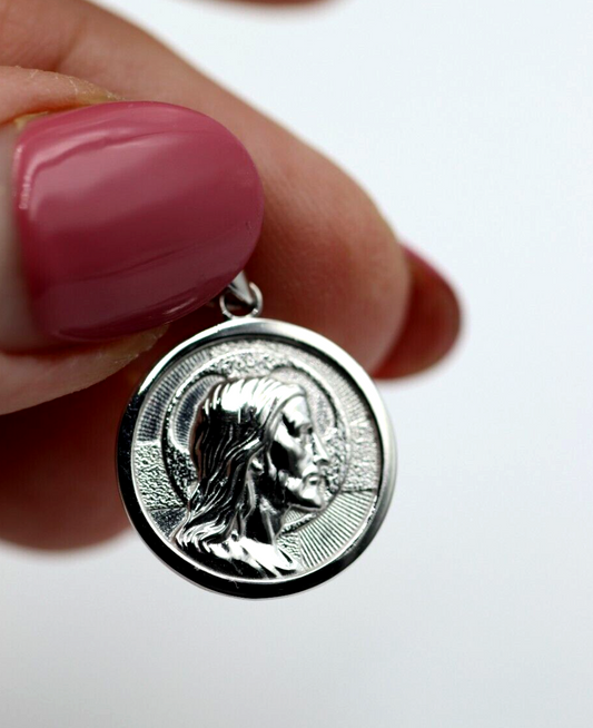 Sterling Silver 925 Round Jesus Pendant or Charm