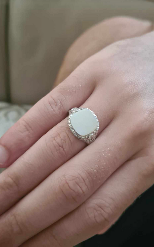 Genuine Mens Sterling Silver Square Engraved Signet Ring - Choose from Ring Sizes Z+1, Z+2 , Z+3, Z+4