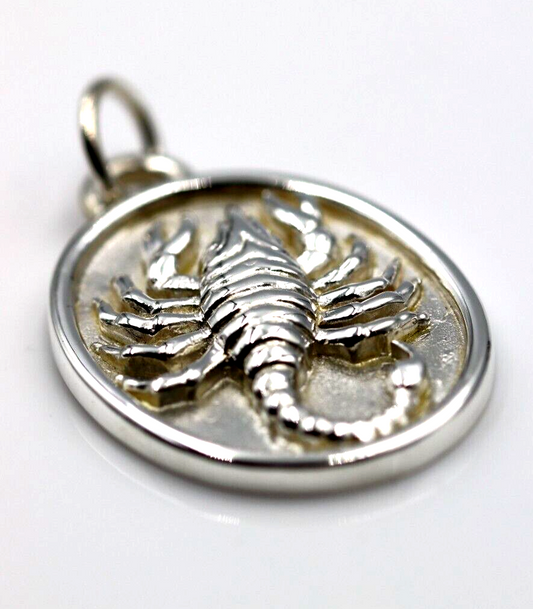 Genuine Sterling Silver 925 Large Solid Oval Scorpion Pendant
