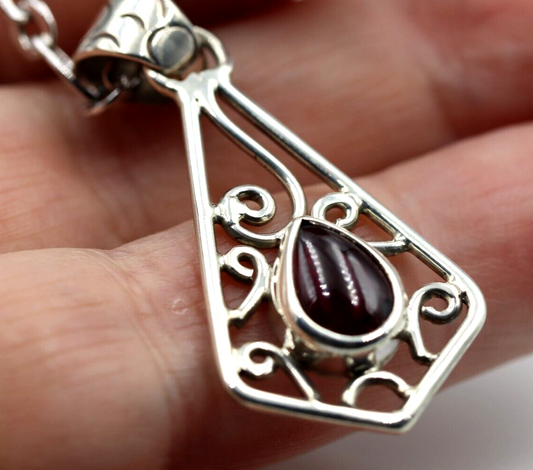 Sterling Silver 925 Cabochon Ruby Swirl Pendant + 55cm Chain/Necklace -Free post