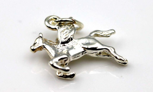 Genuine Sterling Silver 925 3D Horse & Jockey Charm / Pendant