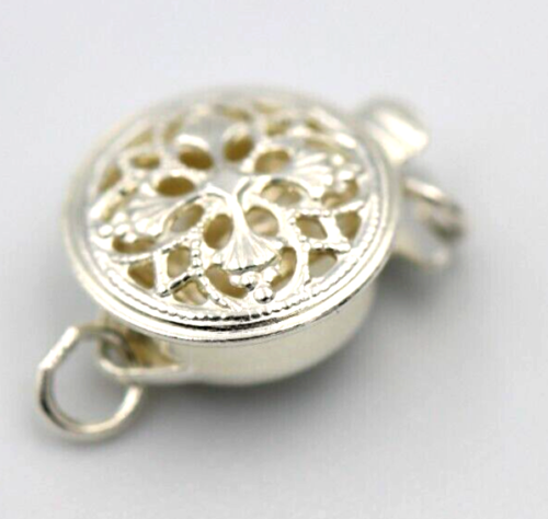 Genuine Sterling Silver Filigree Round Bead Stringing or Pearl Clasp