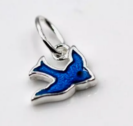 Genuine Sterling Silver 925 Enamel Blue Bird Pendant / Charm