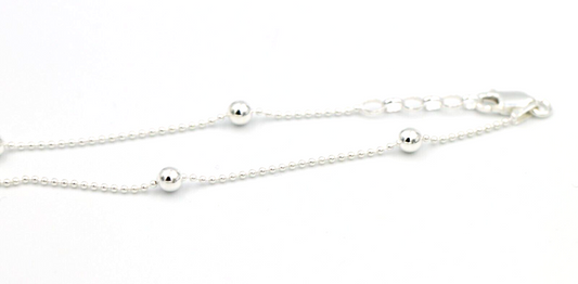 Sterling Silver 925 Thin 1.2mm and 4mm ball bracelet 19cm long