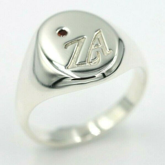 Genuine New Size N Sterling Silver 925 Solid Heavy Signet Ring Garnet + Engraving