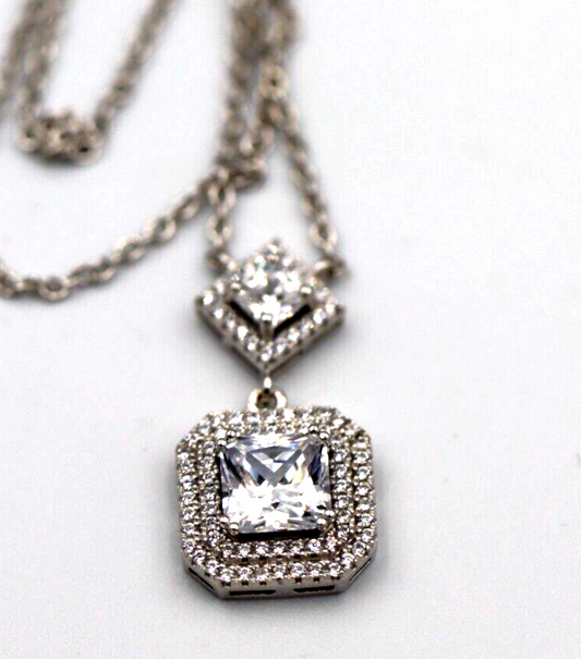 Genuine Cubic Zirconia 925 Sterling Silver Pendant + Necklace *