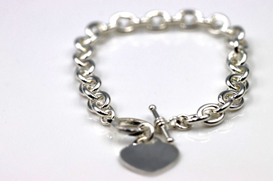 Genuine 925 Sterling Silver Cable Bracelet with T Bar and Heart