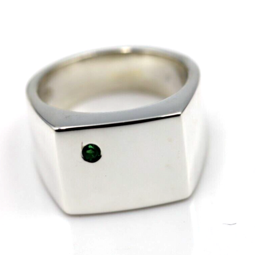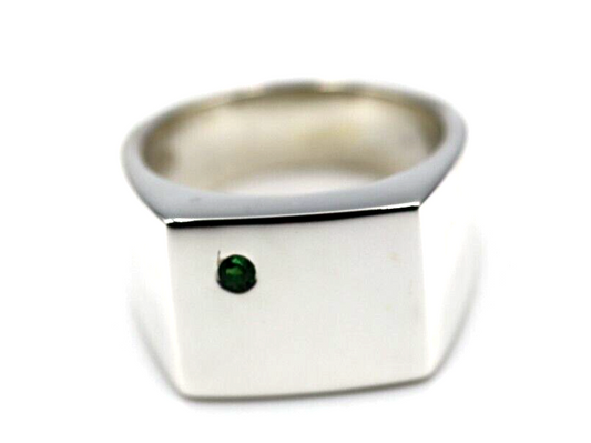 Genuine Emerald Set Sterling Silver 925 Rectangle Signet Ring