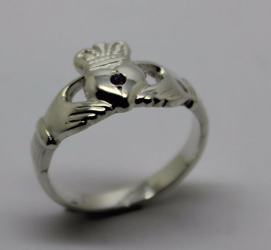 New Sterling Silver 925 Purple Amethyst Claddagh Ring