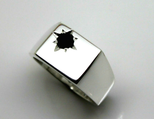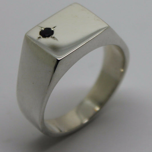 Kaedesigns Mens Sterling Silver 925 Black 4mm Sapphire Square Signet Ring