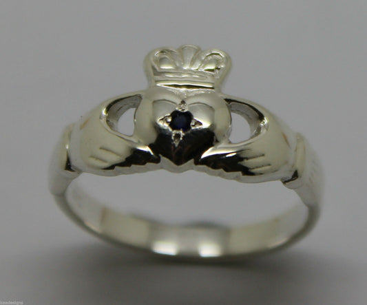 Size M Genuine New Sterling Silver Australian Sapphire Claddagh Ring