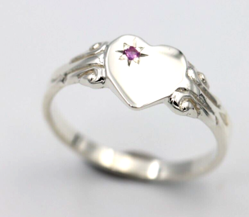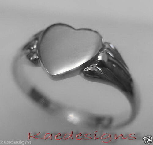 Kaedesigns, Genuine 925 New Childs Solid Sterling Silver Heart Signet Ring