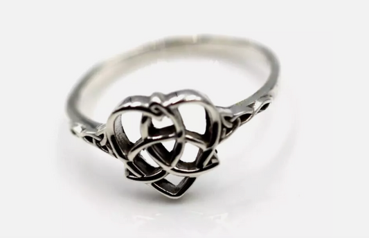 Size S, Genuine 925 Sterling Silver Triquetra Heart Ring 11mm
