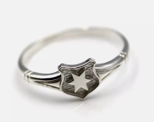 Small Sterling Silver 925 Shield Signet Ring - Engraved With Star