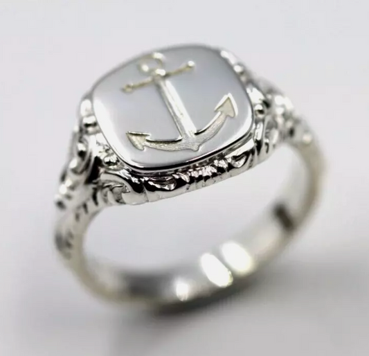Genuine Sterling Silver 925 Square Engraved Signet Ring + Engraved Anchor - Choose your size