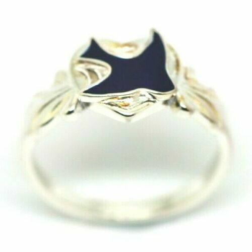Size P Genuine Sterling Silver Single Heart Signet Ring with Enamel Blue Bird