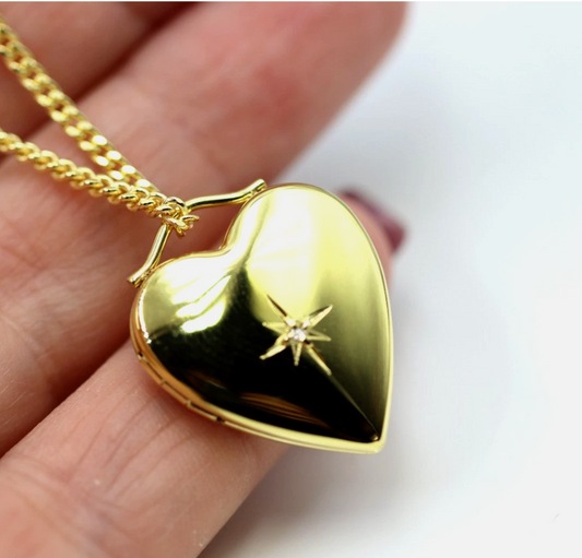 Sterling Silver 925 GP 20mm Diamond Set Heart Locket Pendant + Chain