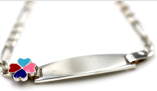 Sterling Silver 925 4 Leaf Clover Identity ID Bracelet 17cm long