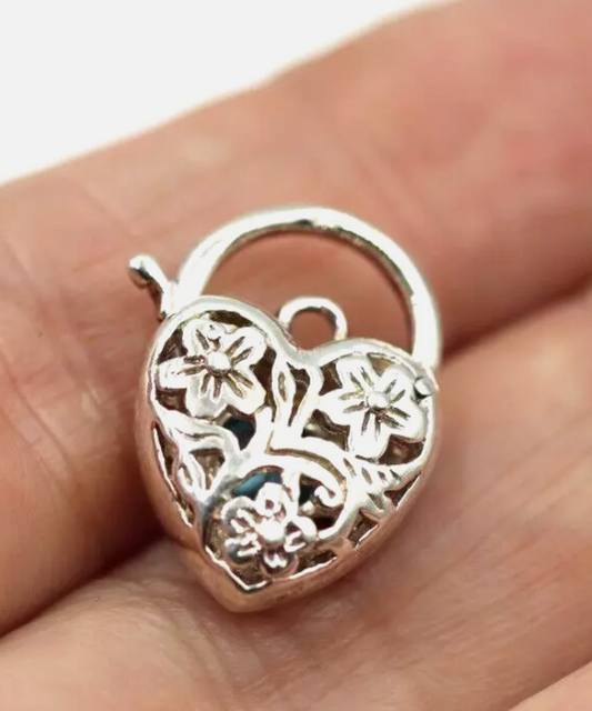 Sterling Silver 925 Filigree Topaz CZ Filigree Heart Padlock 13mm