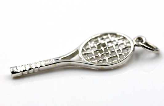Sterling Silver 925 Tennis Racquet Court Sport Pendant / Charm
