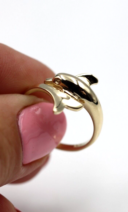 Genuine New 9ct Yellow or Rose or White Gold or Sterling Silver Dolphin Ring