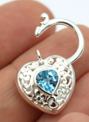 Sterling Silver Filigree Natural Blue Topaz Filigree Heart Padlock 15mm