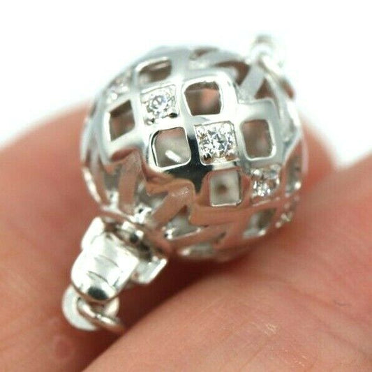Kaedesigns New Genuine Sterling Silver 12mm Cubic Zirconia Ball Clasp