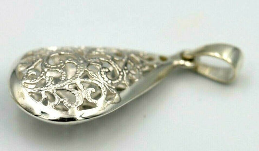 Genuine Sterling Silver 925 Large Teardrop Filigree Pendant