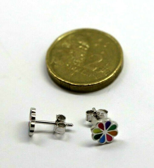 Sterling Silver Children Child Small Enamel Flower Earrings