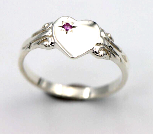 Kaedesigns, Genuine 925 New Childs Solid Sterling Silver Heart Signet Ring 324