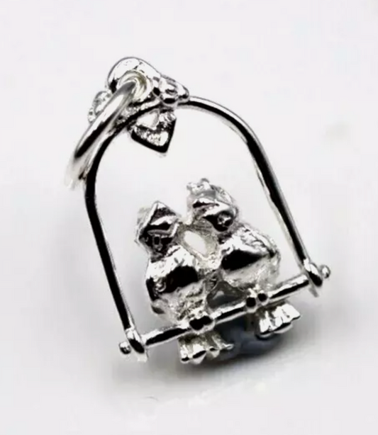 Genuine Sterling Silver 925 Lovebirds Love Birds Pendant