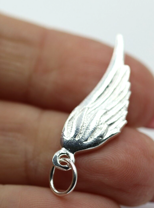 Solid sterling silver 925 Angel Wing charm 3D pendant or charm